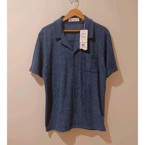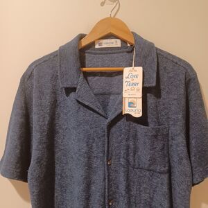 NWT Laguna Shirt Mens M Navy Cabana Terry Cloth Button Up Beach Pool Collared