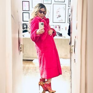 NWT Lala Parker PINK SAPPHIRE FAUX FUR TRENCH XL