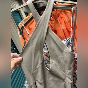 NWT Lamarque Lavina leather halter neck dress in stone - size Small