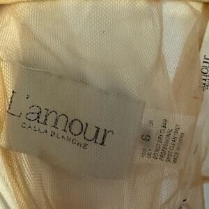 Designer L’amour Calla Blanche Claudia white lace wedding dress with thigh split! New with tags **minor flaws: dress was tried on so mas minor imperfections along hem and a small mark by lace detail along side of front of gown (see 3rd from last photo) and teeny mark along back near zipper (see 4th from last photo) great condition overall **