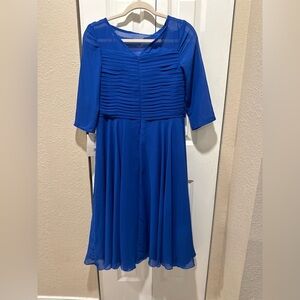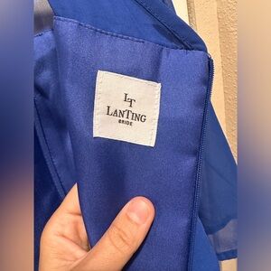 NWT LanTing Bridal Royal Blue A-line Boatneck Pleated Chiffon Dress , size 6 custom measurements
