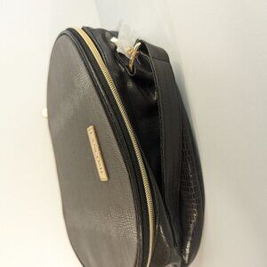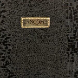 NWT Lancôme Round Faux Leather Alligator Travel Cosmetic Case Bag Black