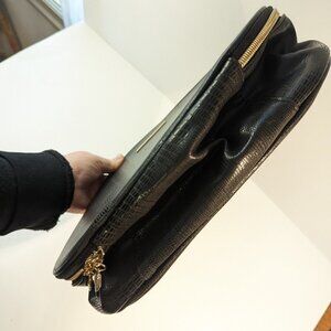 Lancôme Large Round Black Faux Alligator Embossed Patent Leather Cosmetic Case.