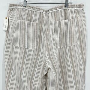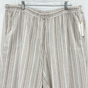 NWT Land n Sea Tan Striped Linen Blend Pants, Women’s Plus Size 2X.