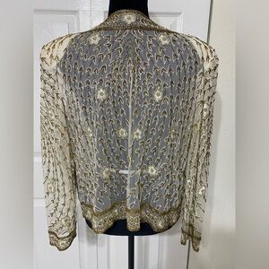 NWT Landmark Gold and Cream Embroidered Women's Jacket size 1XL