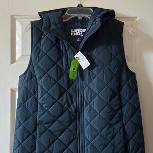 NWT Lands' End Dark Green FeatherFree Insulated Hooded Vest Size Small