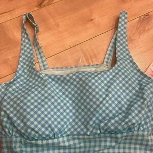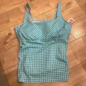 NWT Lands’ End Gingham Square Neck Tankini Top Blue Summer Swim Beach Sz 16DDD