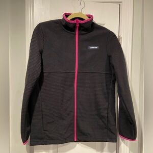 NWT Lands End Girls Size XL Black Pink Waffle Fleece Wind Resistant Full Zip