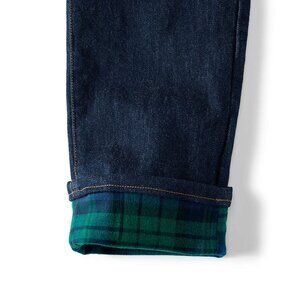 NWT Lands' End Men's Flannel Lined Jeans Dark Wash Black Watch Plaid 38X34 38/34