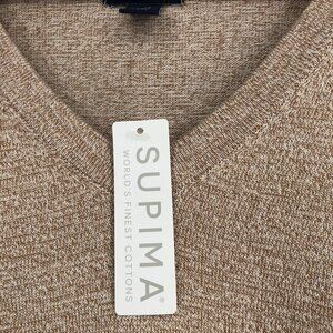 NWT Lands End Mens V-Neck Supima Cotton Sweater XL Beige Church Quiet Luxury