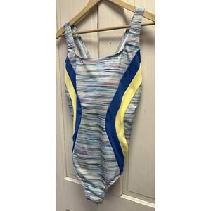NWT Lands End Size 16 One Piece Swimsuit Multicolor Striped Criss Cross Back