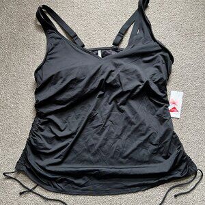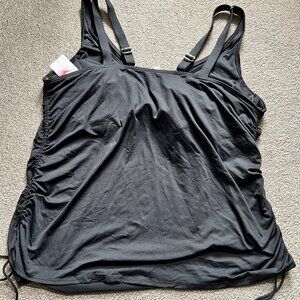 NWT Land's End Swim Top Black Underwire Tankini Runched Sides Women's UPF | 24W