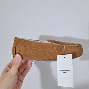 NWT Lands End Toddler Boy Suede Preppy Sherpa Mocassin Slippers Hard Sole 12