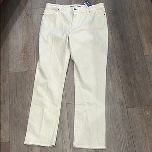 NWT Lands' End Warm Ivory Cream Mid Rise Straight Denim Jeans Size 16