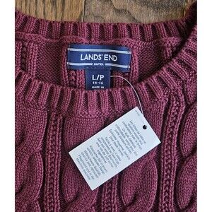 NWT Land's End Women's Drifter Sweater sz L/P 14-16 Cable Knit Crew Neck Maroon New. Please note pictures for measurements