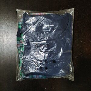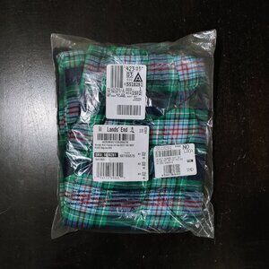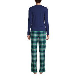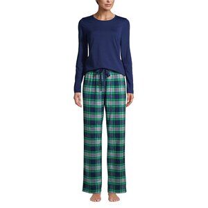 NWT Lands End Women's Pajamas Set Cotton Long Sleeves Green and Navy Plaid XXS 0