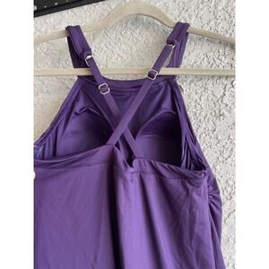 New with tags Lands End size 10 dark purple swim dress. Measures 16” from armpit to armpit.