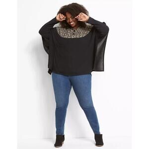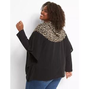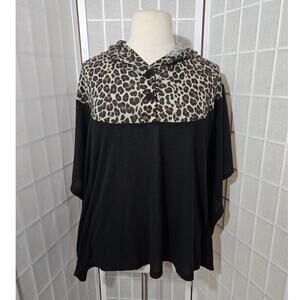 NWT Lane Bryant Black Leopard Print Dolman Sleeves Hooded Poncho Plus Size 14/16