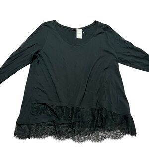 NWT Lane Bryant Black Long Sleeve Top Lace Trim Ruffles Business Casual Plus Size 18/20
