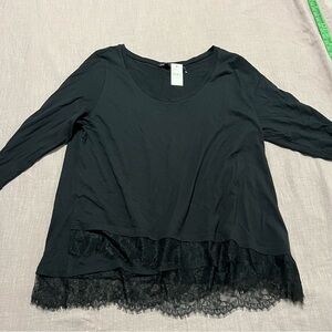 NWT Lane Bryant Black Long Sleeve Top Lace Trim Ruffles Business Plus Size 18/20