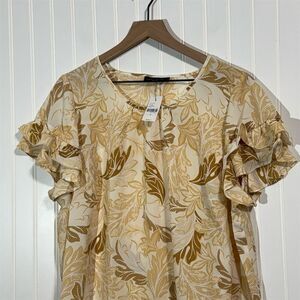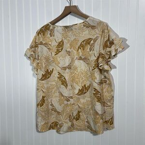 NWT Lane Bryant Blouse 16 Plus Ruffle Sleeve Gold Leaf Floral Boho Western Top