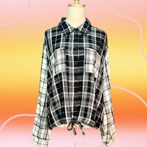 NWT Lane Bryant ‘Classic Long-Sleeve Collared Button-Down Crop Shirt’ in Plaid
