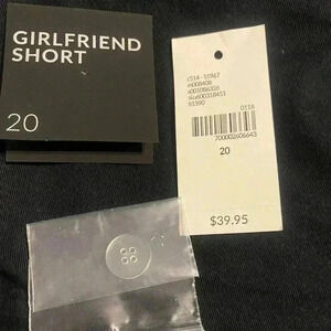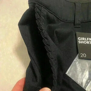 NWT Lane Bryant Girlfriend Shorts in black. Two front pockets with pleats on the edge of pockets. Back pockets are fake. Waistband had elastic sewed in & is stretchy. I took the tags off & tried on. Tags are in the pocket. Never worn. Women’s size 20. 97% cotton 3% spandex