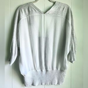 NWT Lane Bryant Grey Knit V- Neck Kimono Sleeve Mixed Media Sheer Top Sz…