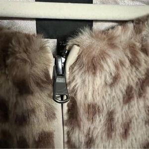 This faux fur jacket has an all over cheetah animal print and the fabric is soft and fuzzy.