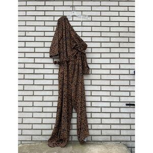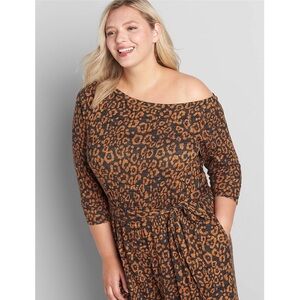 NWT Lane Bryant One-Shoulder Hacci Jumpsuit New Jaguar Jungle Leopard Print