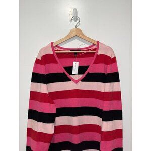 NWT Lane Bryant Pink Striped Pullover V-neck Long sweater Women's Plus Size 22/24