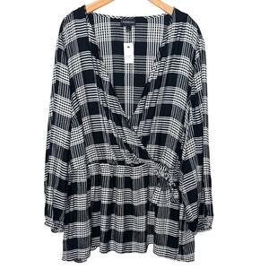NWT Lane Bryant Plaid Faux Wrap Top Size 28
