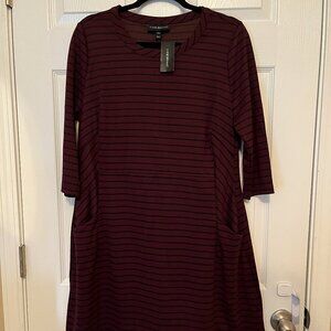 New with Tags Lane Bryant Plum Striped 3/4 Sleeve Fit & Flare Dress - Women's Plus 10/12