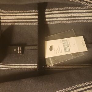 This is a NWT Lane Bryant shawl collar striped blazer in size 26. This blazer is perfect for adding a professional touch to any outfit. The striped pattern is eye-catching and the shawl collar adds a touch of sophistication.