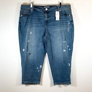 NWT Lane Bryant Signature Fit Boyfriend Capri Jean Light Wash Paint Splatter 20