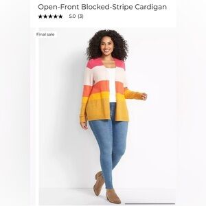 NWT Lane Bryant Size 14/16 Open-Front Blocked-Stripe Cardigan