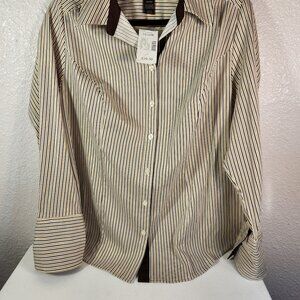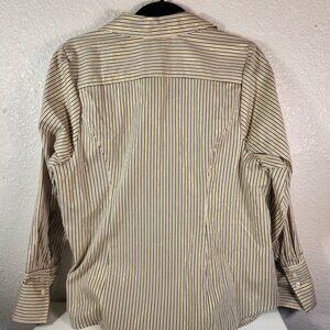 NWT Lane Bryant Size 14/16W Long Sleeve Gold Metallic Striped Button Up Top