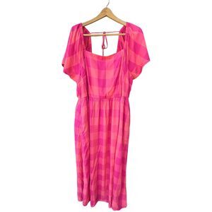 NWT Lane Bryant Size 20 Pink Flutter-Sleeve Gingham Plaid Midi Dress Fit Flare