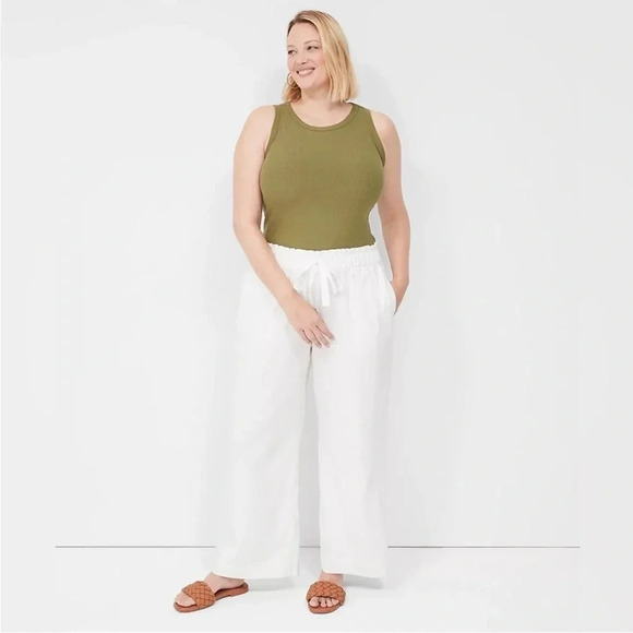 NWT Lane Bryant | Soft Linen Blend Wide Leg Pant in White Cream Flowy Beachy 14