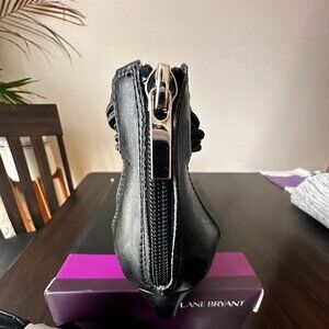 NEW IN BOX!! Lane Bryant Black wedge sandals with silver metal embellishments. Never worn and still in the box, see photos. Size 8W. Thanks for shopping and please let me know if you have any questions!