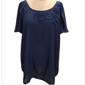 NWT Lane Bryant Sunburst Design Flutter Sleeve Top Size 14/16 Blue Flowy Office