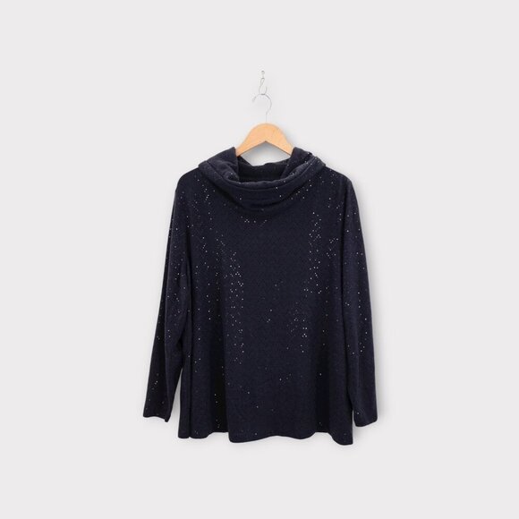 NWT Lane Bryant Sweater Plus Size 14/16 Cowl Neck Blue Sequins Stretch Pullover