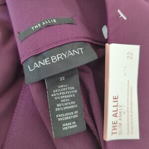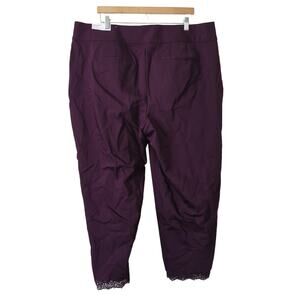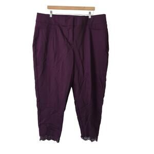 Lane Bryant women's pants size 22 plus size the alley dress pants slim ankle purple cute lace eyelash trim bottom ankle in seam 27. rise 13. flat across waistband 22. brand new with tag