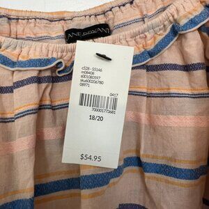 NWT Lane Bryant Top Peach Striped Cotton Ruffle Neck Lace Trim 18/20 1X 2X