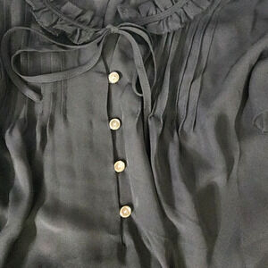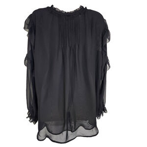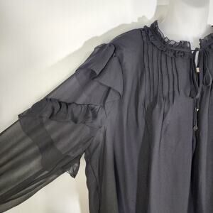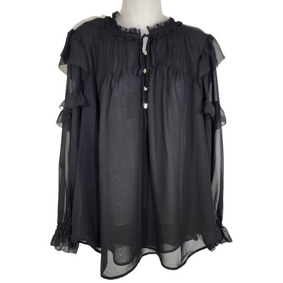 NWT Lane Bryant Womens Split Neck Popover Blouse Black Sheer Ruffle Pleated 18