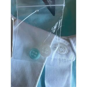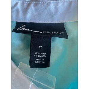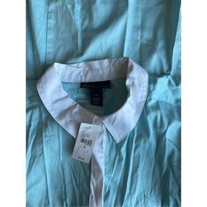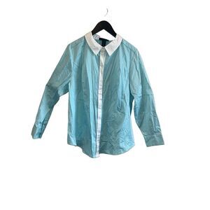 Lane Bryant size 20 button up shirt. Hidden buttons. Tiffany blue with white collar and button cover. Curved hem. Poplin shirt.