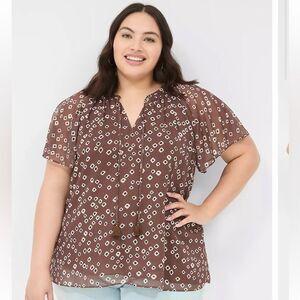 NWT Lane Bryant Swing Flutter-Sleeve Popover Blouse 18/20