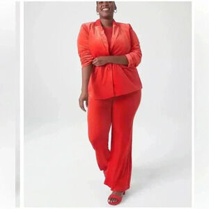 NWT Lane Bryant Bright Cherry Red Velvet Flared Pants Mid-rise Stretchy Sz 22