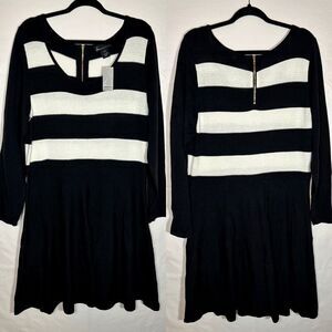 NWT Lane Bryant Sweater Dress Long Sleeve Black and White Striped Stripes Mini