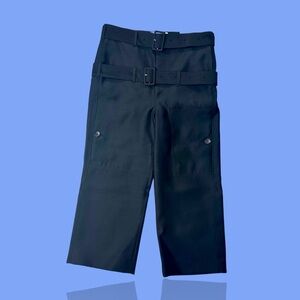 NWT Lanvin Double-Belted Cropped Trousers in Black Wool / Silk Blend Size 38 = M